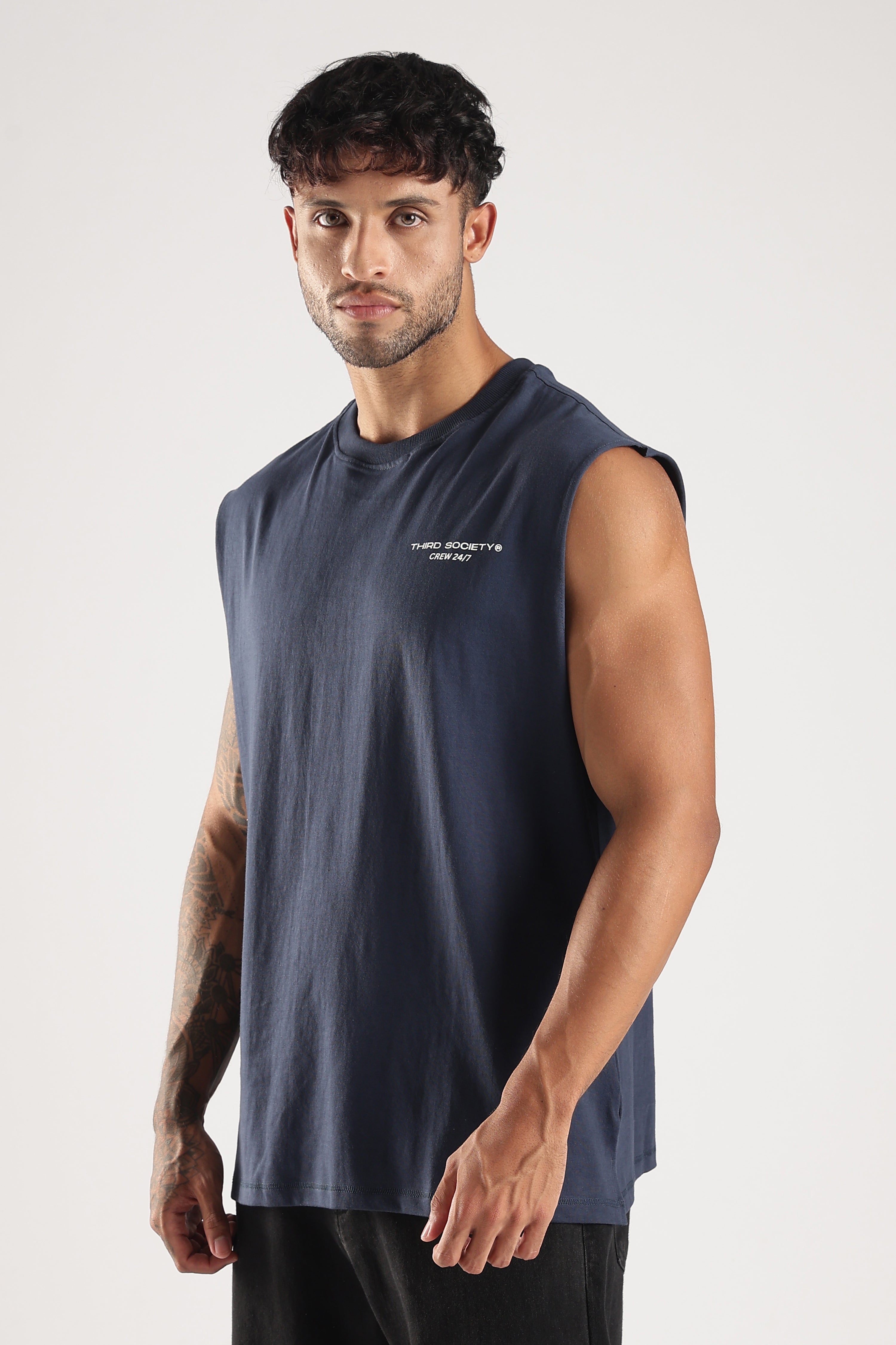 Raw-cut armholes and a relaxed athletic fit allow unrestricted movement across training, recovery, and everything in between. The front features subtle THIRD SOCIETY® — CREW 24/7 branding, representing commitment that doesn’t switch off. The back is left clean — no prints, no noise.